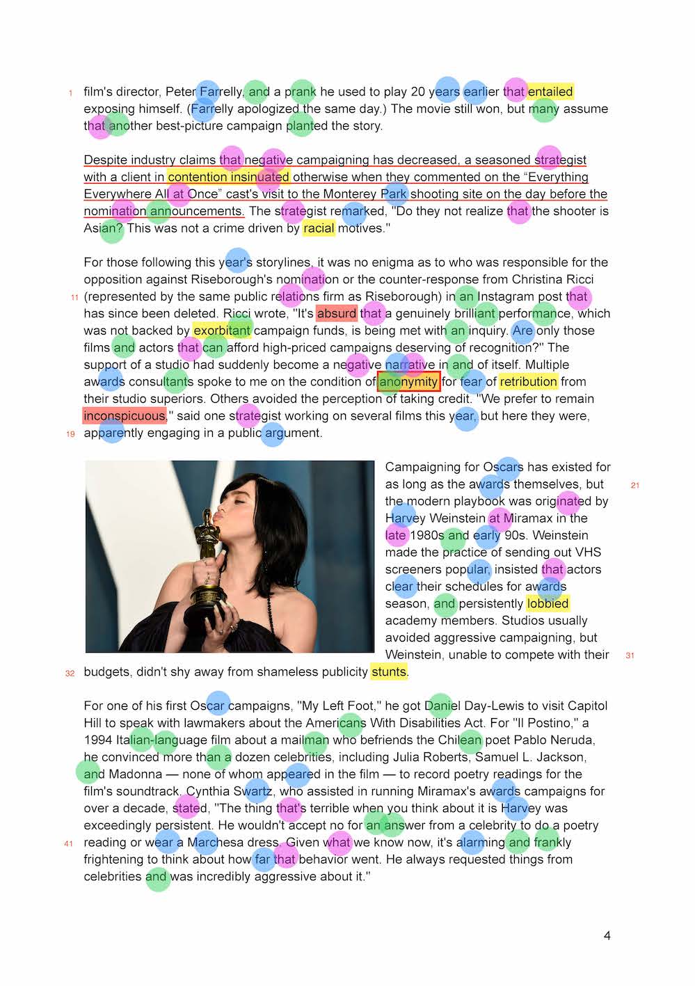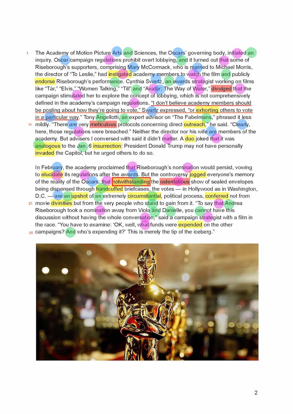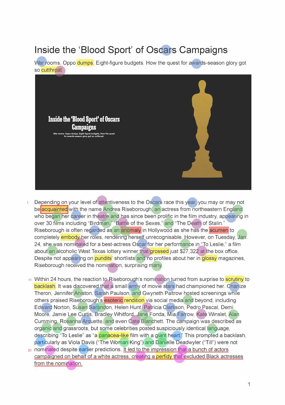 16. overblown means exaggerated or overstated, in this case, referring to the negative narratives that are sometimes used in Oscar campaigns.
