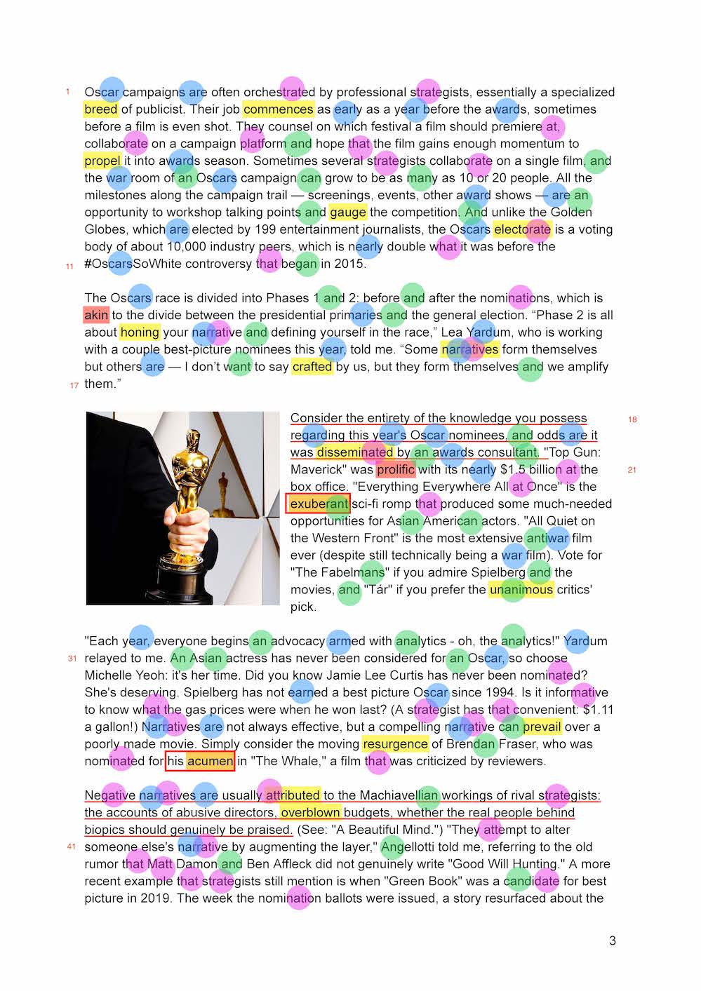 07. pundits means experts or commentators who offer their opinions or analysis on a particular subject, in this case the Oscars race