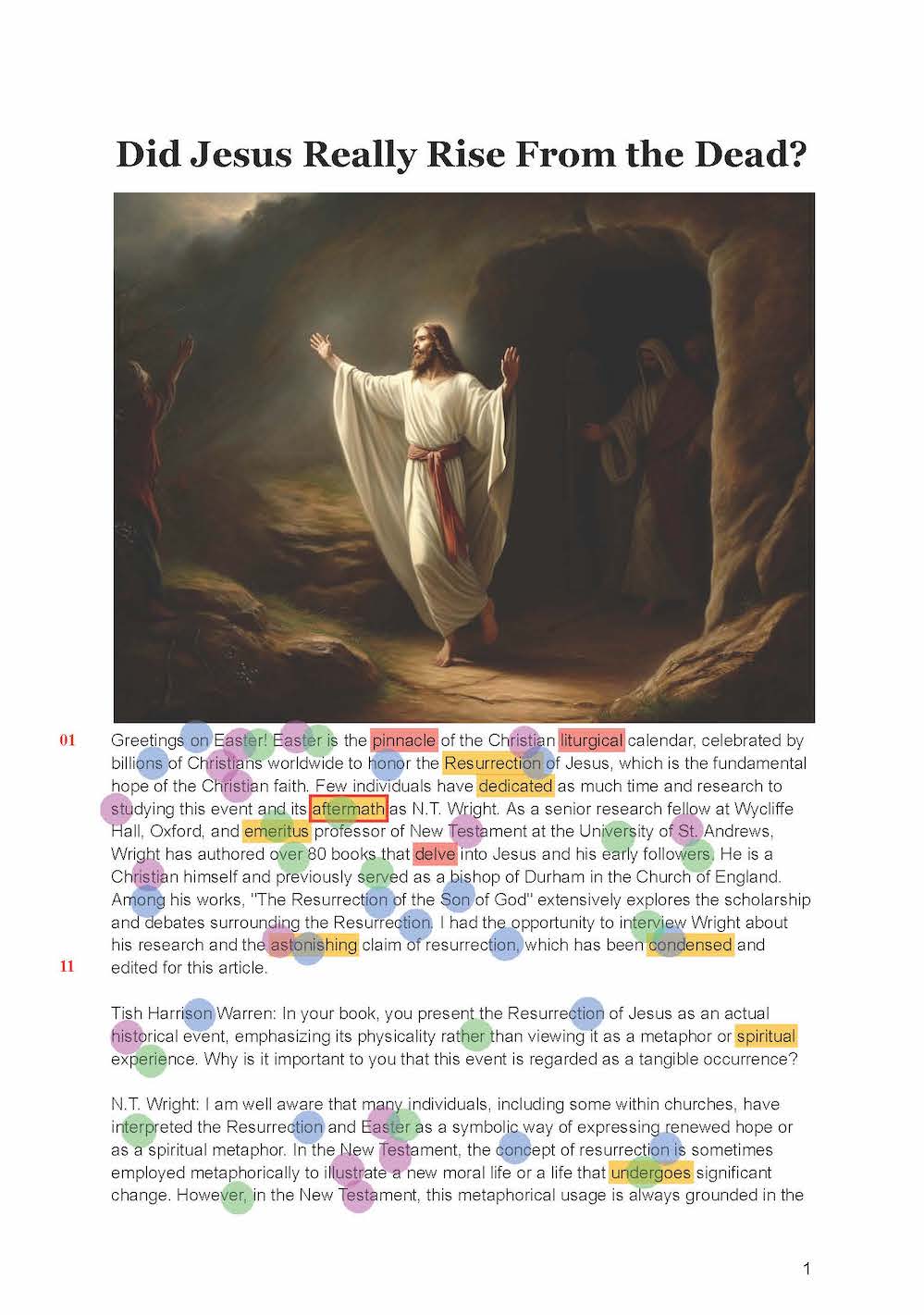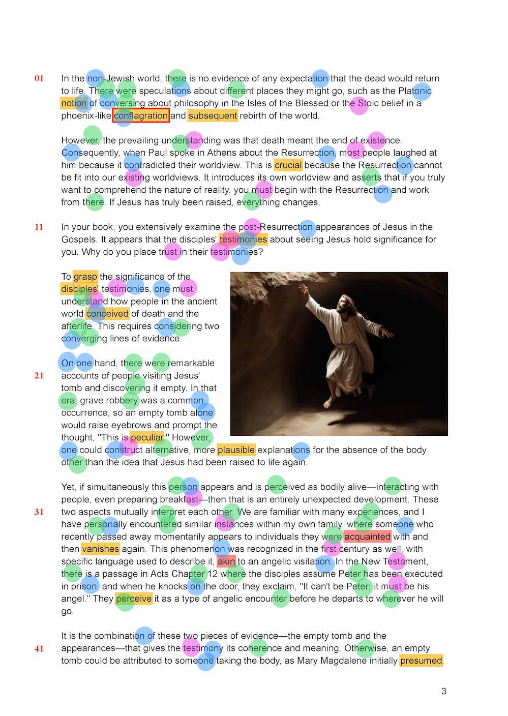 03. resurrection means the act of rising from the dead, particularly referring to Jesus Christ’s rising from the dead according to Christian belief.