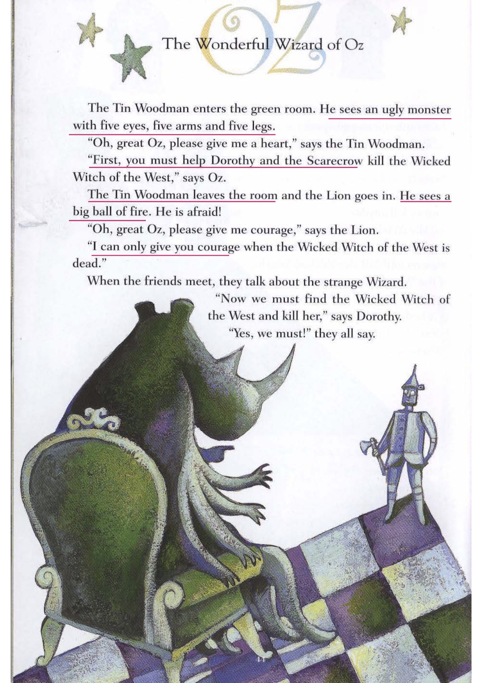 Q3 The Tin Woodman leaves the room.